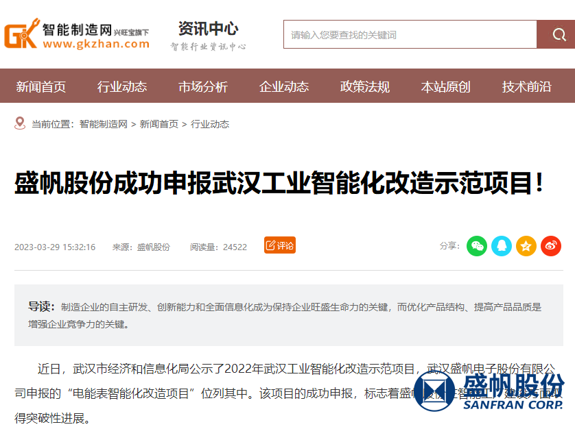 近日,武汉市经济和信息化局公示了2022年武汉工业智能化改造示范项目,完美app申报的“电能表智能化改···